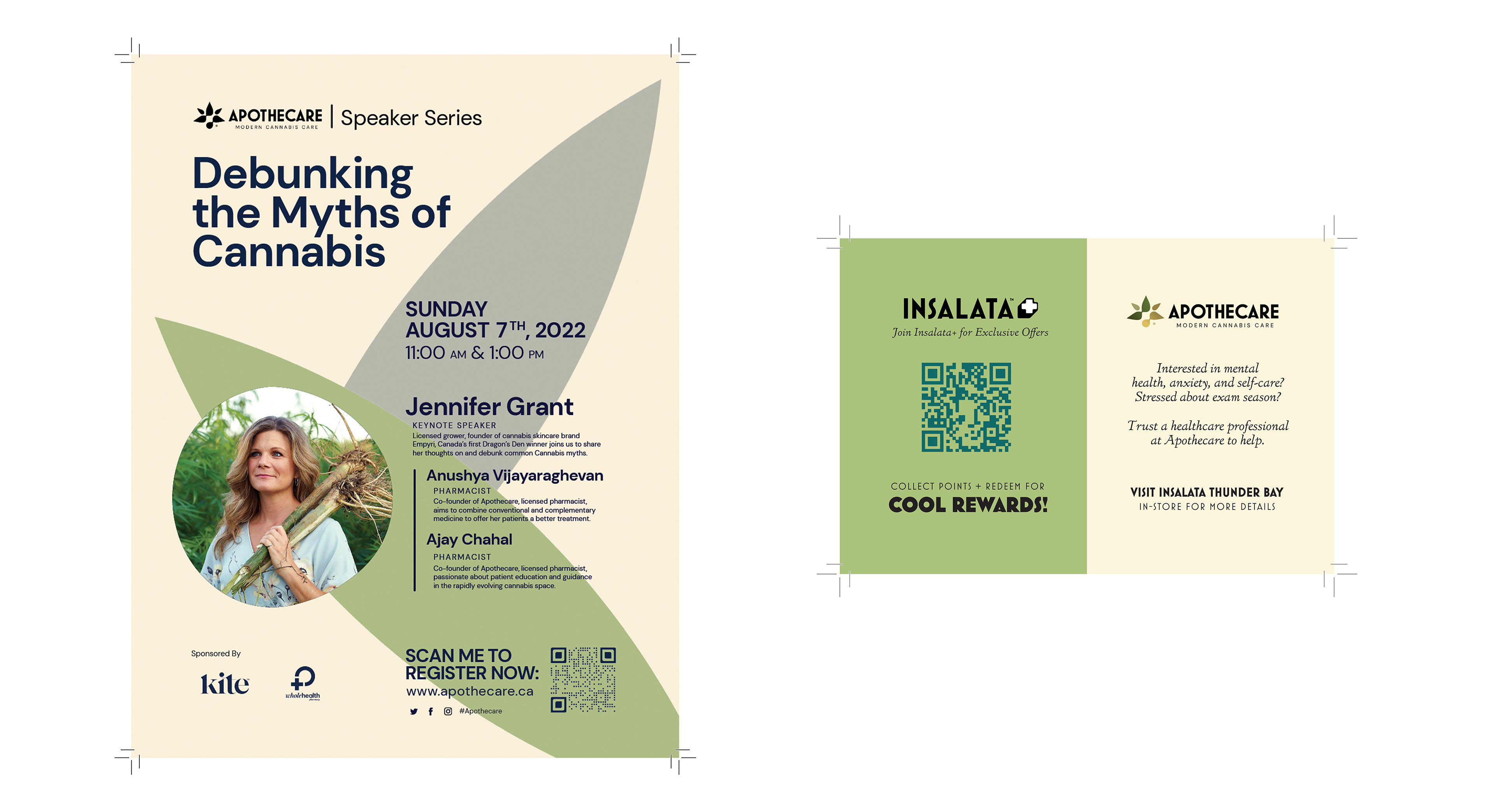 From speaker series promotions to pharmacy partnership cards, each asset was designed to extend the brand into physical spaces and drive measurable registrations and consultations.