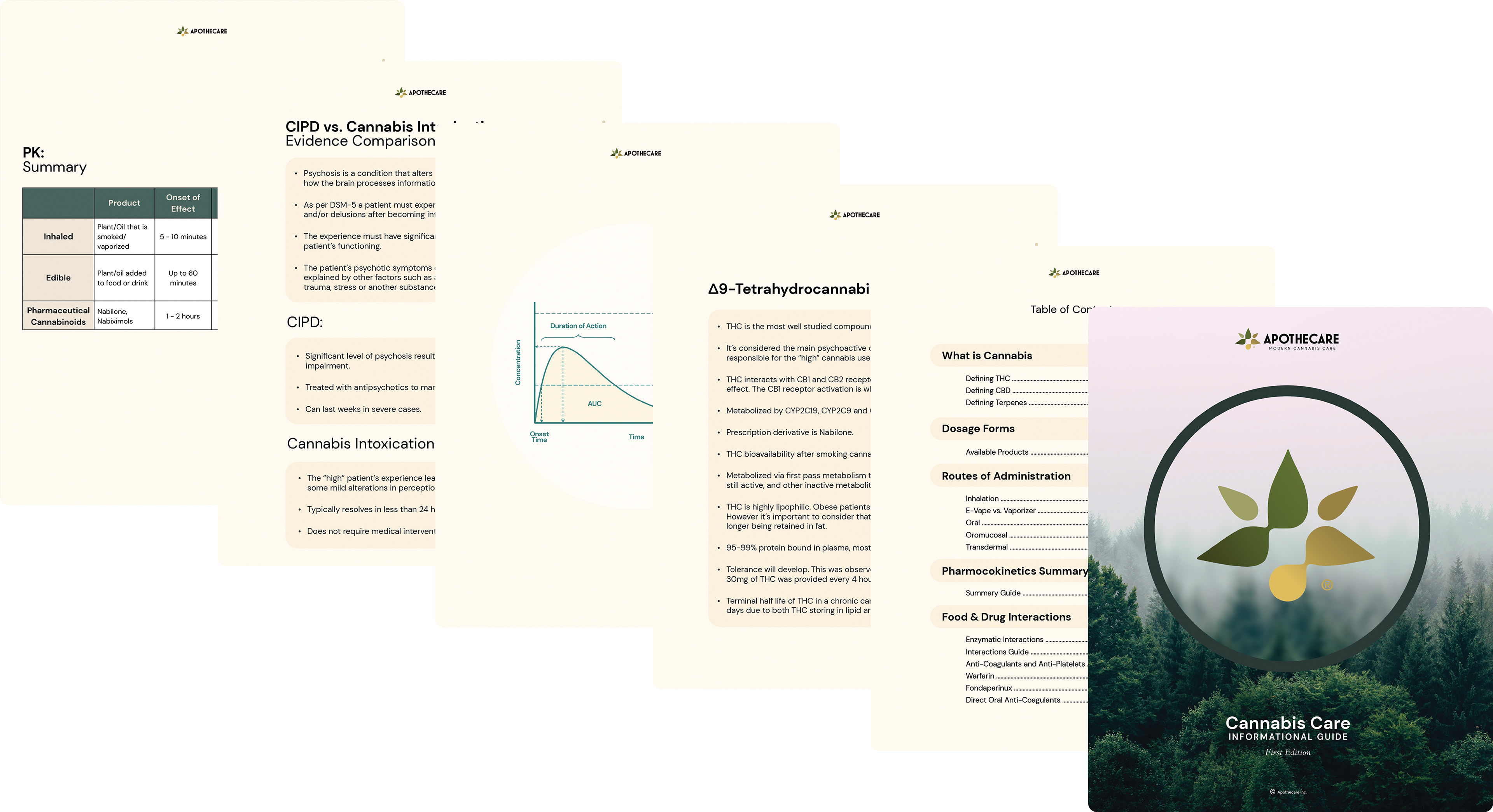 The brand required print that could hold its own in clinical environments. I led the design and production of an 80-page Cannabis Care Informational Guide: a rigorous, pharmacist-authored medical reference manual covering evidence comparisons, dosage forms, drug interactions, and pharmacokinetics.