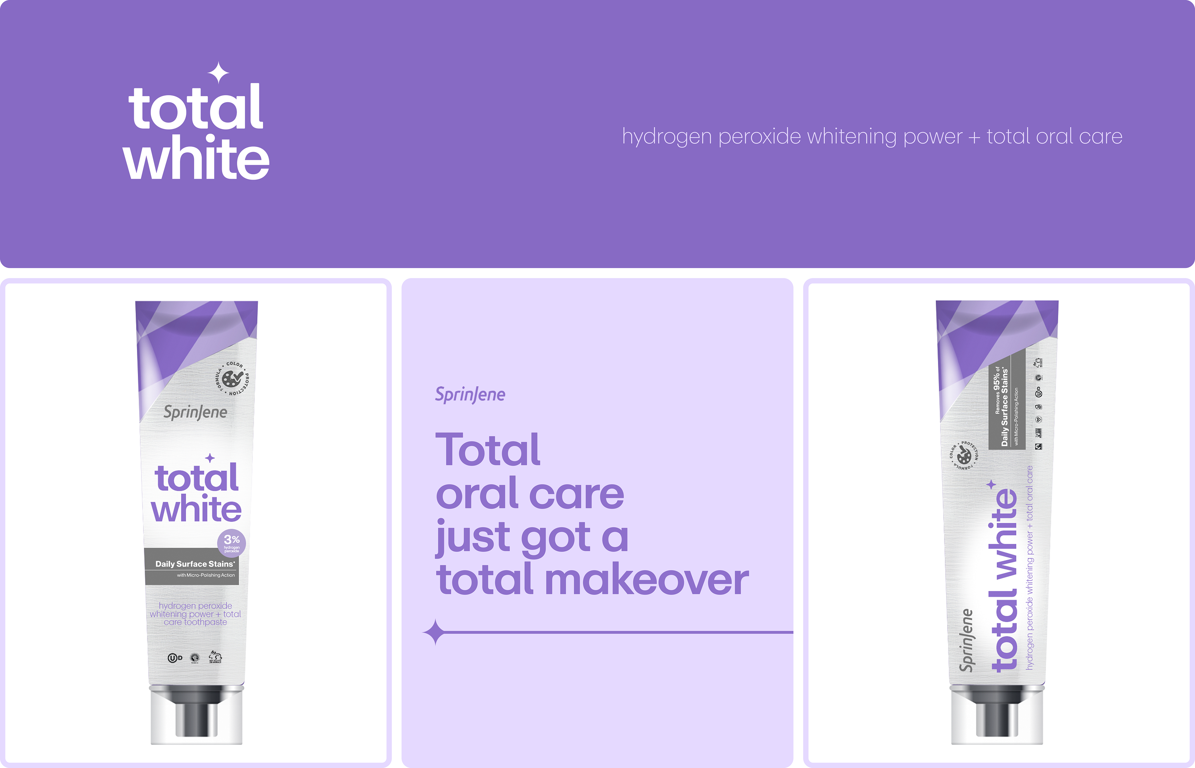 When SprinJene decided to enter the whitening category, it was signalling a new chapter for the brand. I led the naming, packaging design, and launch of Total White, the brand's first hydrogen peroxide whitening toothpaste. Harmonized with the same core principles of our core black seed oil products.